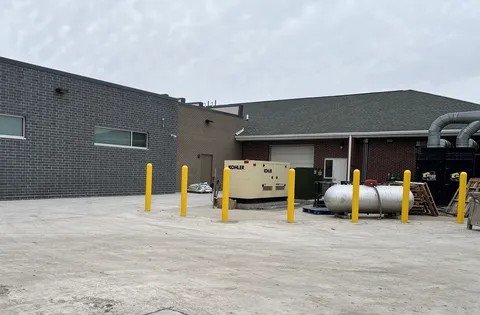 - Decommissioning & Site Prep: Once the temporary systems were live, the original generator, its concrete slab, and the propane tank were decommissioned and moved, clearing the targeted area for construction.